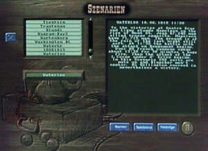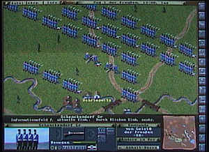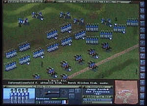 Mit diesem Spiel des Jahres 1996 lassen sich alle Schlachten der Weltgeschichte vom Altertum bis in die Neuzeit nachspielen, erstellen oder bearbeiten. Der zugehörige Editor ermöglicht, Karten sowie Einheiten selbst zu erstellen und daraus Schlachten-Szenarien zu entwickeln . Das Spiel überzeugt vor allem durch die Dynamik der Schlachten. Ich selbst habe bereits einige Szenarien wie Leuthen, Kesselsdorf, Rossbach und Waterloo erstellt, die man hier downloaden kann. Das Spiel lässt sich per eMail spielen. Im Internet gibt es eine Vielzahl von Szenarien. |